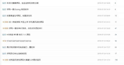 在这里我们能够看到,各种行业各种源码的求购信息。这可都是一个个的项目,而且都是非常暴利的项目。你从标题中就能感受到浓浓的暴利,我们随便点进去一个看一下。