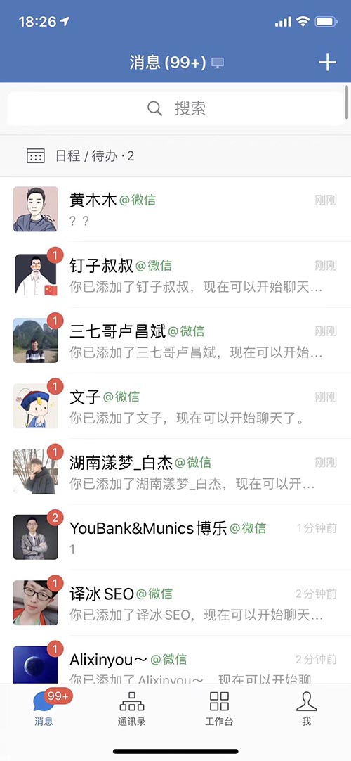 突出了日常待办功能,非常实用,待办事项可以微信提醒。