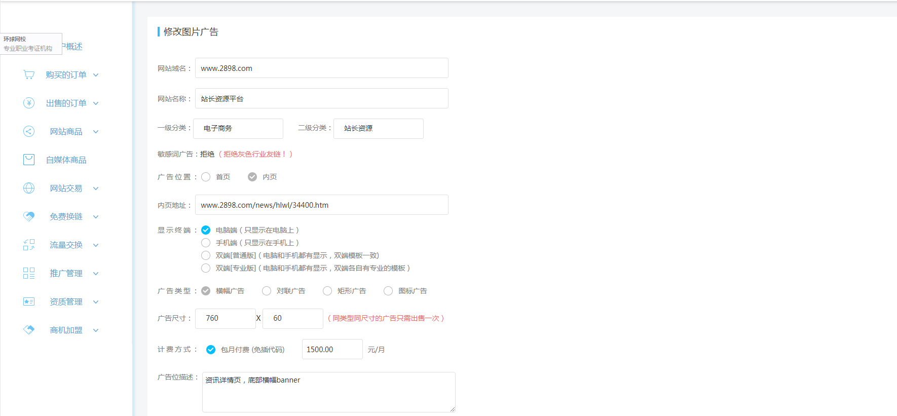 2898站长资源平台广告终端展示设置操作指南