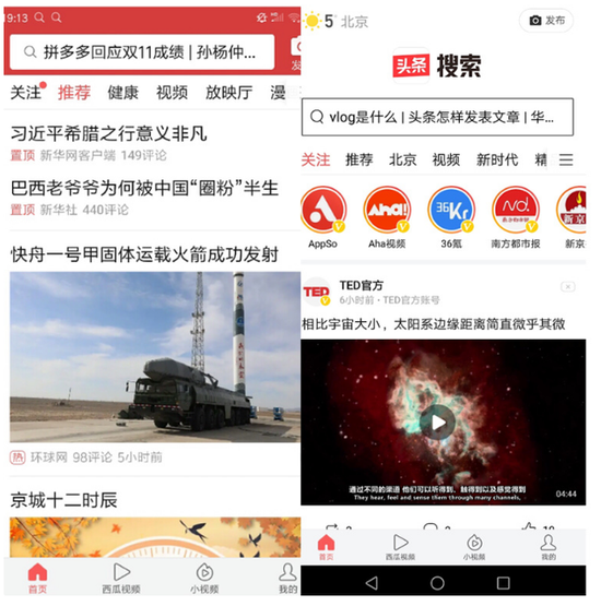 根据磊哥了解得知,最近有部分安卓手机今日头条用户的主界面悄然发生了变化,在今日头条APP中头条搜索被提上了前线,不仅主界面的搜索栏从顶部边框移至主页面,占据了首屏约三分之一的位置,而且推荐页展现从纯feed流变为搜索框加feed流的组合形式,风格有点类似百度。看来,今日头条应该是准备开始大力强化头条搜索的功能了,深开始培养头条用户的搜索习惯了。
