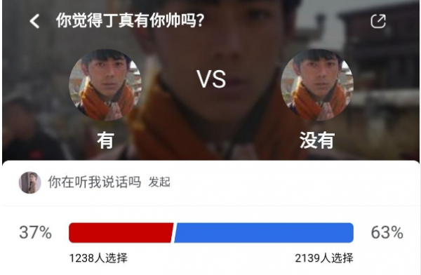今年在12月中旬,一场名为“你觉得丁真有你帅吗?”的投票在,虎扑上发起了。竟然有63%的人觉得自己比丁真帅。