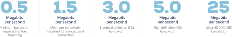 如果您对实时流有特定的解决方案,可以参考Netflix的Internet速度建议页面。以下列表适用于Netflix观众(因此观众可以确认他们具有所需的下载速度来观看视频流),但是您可以使用提供的信息作为每个流行分辨率所需比特率的大概估计。(注意:这些值只是建议 - 它们不一定是行业标准!)