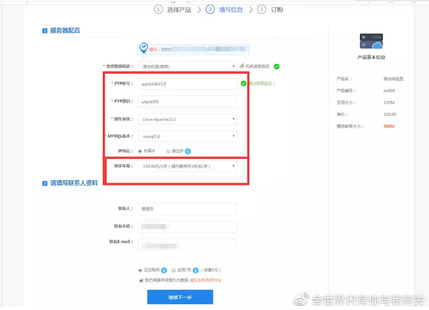 (这里提醒下选择试用主机是不能通过阿里妈妈审核提交的,试用主机只能自己访问测试网站用的)
