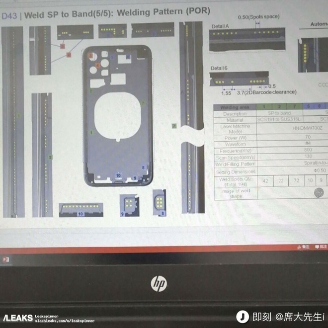 发布在知名爆料网站Slashleaks上的这张照片,与2018版iPhone的尺寸大致相当,但只能看到这款新手机的焊接金属底盘。照片中最重要的细节是金属底盘的背部留出的孔洞,其中有三个孔洞似乎是为三个圆形相机摄像头预留的。