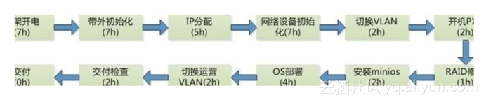 下图为传统物理机的典型部署流程(图片来源《4小时:打破常规,打造黑石物理服务器极限交付》)