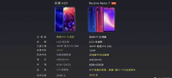 3月21日,小米创始人、小米集团董事长兼CEO雷军晒出了红米Note 7 Pro与友商荣耀V20和荣耀8X对比图。