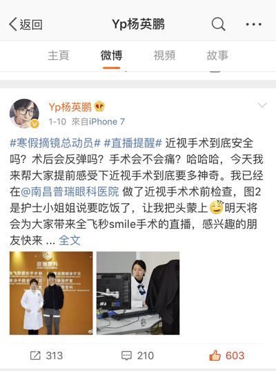 微博人气偶像齐聚普瑞眼科,亲测手术为寒假摘镜总动员助力